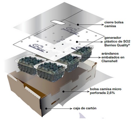 A partir de esta experiencia, SurAgra desarrolló un producto adecuado a las necesidades específicas de los arándanos: Berries Quality. “Una refrigeración convencional no es suficiente, los frutos se ablandan y se ocasionan pudriciones. Considerando los especiales requerimientos de los arándanos, creamos unas pequeñas almohadillas que se incorporan a la caja en conjunto con bolsas plásticas microperforadas, que permiten mejorar la vida útil y la condición de la llegada de los arándanos a su destino”, nos comenta Lavanderos.