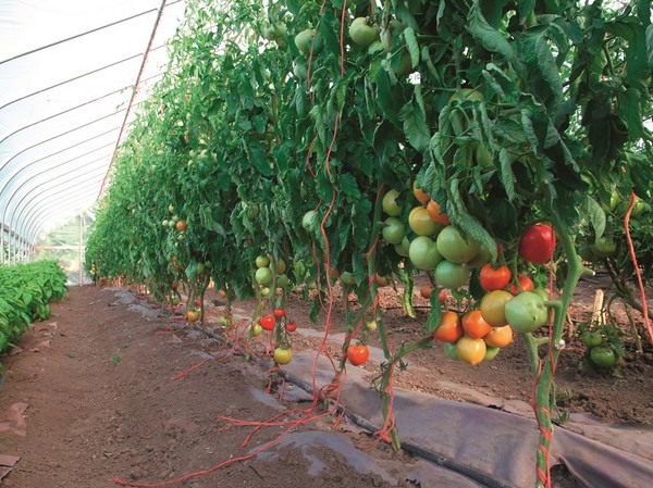 Papel utilizado en el cultivo protegido de tomates; se oscurece debido al riego.