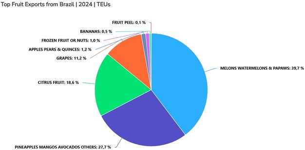 Las exportaciones de lima de Tahití de Brasil batieron un récord en 2024 y continuaron con fuerza en enero de 2025. Comex Stat informa de envíos de 17.150 toneladas, un 18,1% más que en enero de 2024, con unos ingresos de 14,826 millones de dólares, un 13,4% más. Las previsiones de febrero sugieren un descenso de los volúmenes de exportación debido al menor tamaño de la fruta y al endurecimiento de la piel. La propagación del cancro de los cítricos, que prospera en condiciones cálidas y húmedas, supone una amenaza para los productores al dificultar la exportación de fruta contaminada.