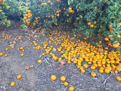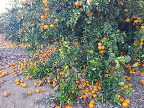 "La parte alta de los árboles es la más afectada al estar más expuesta", cuenta el agricultor valenciano Carlos Arenes. "Depende de la zona hay mayor o menor grado de afectación. Tengo con una parcela de mandarinas Nadorcott con un 50% de fruta en el suelo. No sé cómo acabará todo esto, pero es una verdadera lástima teniendo en cuenta lo bien que se está pagando la fruta este año dado que partimos de rendimientos más bajos de los previstos", añade.