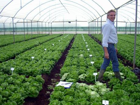 Fabrizio Poletti (Monsanto Technology Development) en un invernadero.