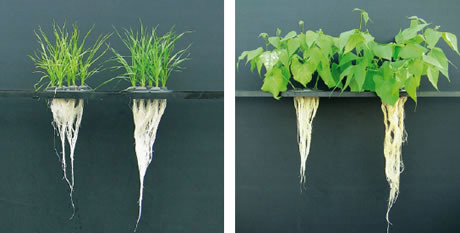 Pruebas con maíz (izquierda) y frijoles (derecha) muestran como el magnesio afecta más al crecimiento de las raíces de las plantas que al suelo.