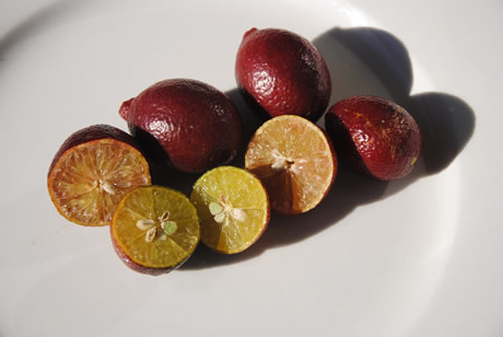 Este es otro cítrico nativo de Australia que se relaciona con el Finger Lime. De hecho, un cruce entre Finger Lime y una variedad Mandarín. La fruta tiene una piel de color rojo oscuro, y en su madurez tiene carne de color rosa/rojo. El tamaño es más pequeño que Tahití Lime y el sabor es intenso/agrio como un limón o lima, aunque muy singular, ya que también tiene características dulces de la Mandarin. El contenido de zumo es muy alto y sus células tienen una explosión de sabor como el Finger Lime, aunque no son de forma redonda sino más bien como las células normales de cítricos.