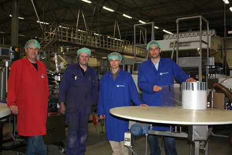De izquierda a derecha: Erik Van Maren, Frank Linders (Pakstation Venlo), Evert-Jan Wassink y Romke van Velden (Freshpack Handling Systems)La línea básica de la máquina es una línea estándar de Sorma, que es conocida entre las máquinas empacadoras de frutas de hueso. Incluso es posible "cubrir" las ciruelas con una tapa y al mismo tiempo empacar en bolsas. La máquina tiene una única salida cuádruple, lo que le permite tener una capacidad de 80 paquetes por minuto.