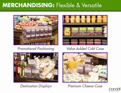 - Merchandising flexible y versátil (posicionamiento de promoción en la tienda, valor agregado en frescura, indicación del destino y comunicación en general);