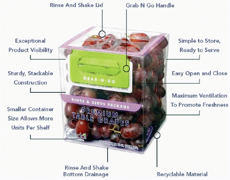 Durante el congreso Asiafruit en septiembre pasado John M. Pandol de Pandol Bros Inc. con sede en California mostró un interesante informe, con el título 'Uso del diseño de empaques para crear emoción y ventas: una oportunidad?', este inició con el 'cubo de enjuague rápido', un empaque innovador para la venta de uvas de mesa que se lanzo el año pasado (ver noticia).Entre las propuestas para una buena comercialización y promoción se encuentran, según el Sr. Pandol: