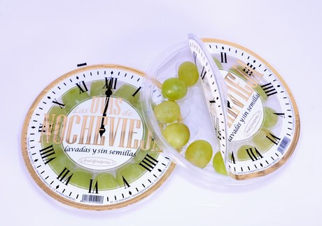 “El envase que hemos elegido es un homenaje a la tradición de la Nochevieja con una imagen del reloj de la madrileña Puerta del Sol. Se trata de un diseño novedoso y atractivo. Es el formato ideal para comerse las doce uvas seguidas al son de las campanadas. Se trata de una tarrina individual, con forma de reloj y con sus doce huecos para las doce uvas, con el fin de no perder la cuenta al tomarse las uvas,” explica Cristina Gutiérrez, de El Ciruelo.