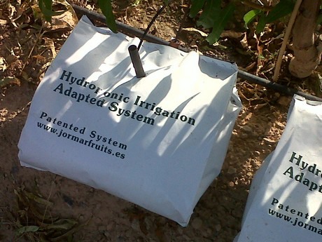 JORMAR FRUITS S.L ha desarrollado y patentado HIAS (Hydropnonic Irrigation Adapted System), un nuevo sistema de riego hidropónico mixto que aprovecha los múltiples beneficios probados de esta técnica de riego. De este modo permite su aplicación a cultivos arbóreos ya establecidos de una manera fácil y con un breve periodo de tiempo de adaptación y sin que la plantación sufra ningún tipo de estrés .La planta puede conservar todas sus raíces pero solo las que se introducen en el contenedor HIAS desarrollan la función de la nutrición hídrica y mineral.