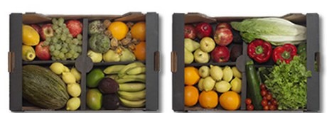 Formatos de cajas mixtas con frutas y hortalizas ecológicas para envío a domicilio.