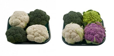 Bandejas filmadas de verduras baby en packs de dos de col roja+verde y col picuda