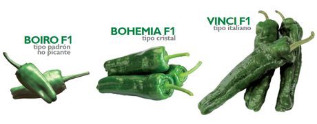 En lo que se refiere a pimientos tipo padrón, destaca la nueva variedad Boiro F1, cuya precoz y productiva planta tiene un vigor medio-alto, con buen porte para cultivos de aire libre y de invernadero. El fruto se caracteriza por un color verde oscuro, y una forma más alargada respecto a su antecesor Celta F1, así como un a superficie más rugosa y asurcada. Se aconseja su trasplante a mediados de agosto y en diciembre.