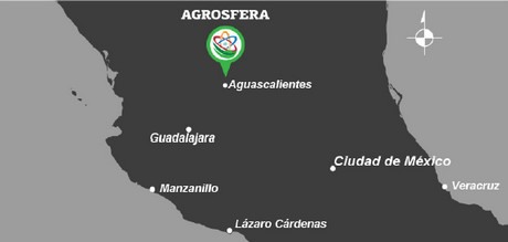 Agrosfera está ubicado en la Carretera 45, la carretera Panamericana, que cruza completamente el país desde Nuevo Laredo, en la frontera con Estados Unidos, hasta Guatemala, a la altura de Malacatán. Concretamente, Agrosfera está en el tramo Aguascalientes-Zacatecas, entre los municipios de Rincón de Romos y Cosío, en Aguascalientes, considerado uno de los estados más prósperos y seguros de México y perfectamente encajado en el centro del país, lo que lo convierte en un punto privilegiado en cuanto a la logística y al acceso a las principales ciudades de México. Además, el parque tendrá acceso a la vía del tren de la empresa Ferromex, una de las más importantes del país. Estas y otras muchas ventajas lo convierten en un enclave muy atractivo para las empresas e inversores del extranjero.