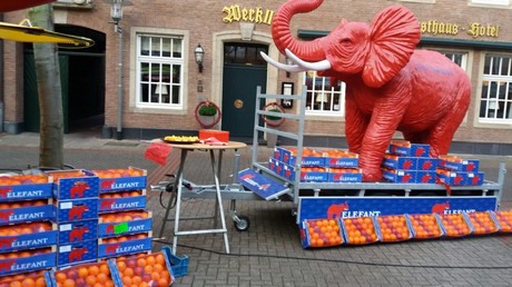 Willem Dijk ha promociona la marca Elefant en Holanda, Bélgica y Luxemburgo con un gran elefante rojo.