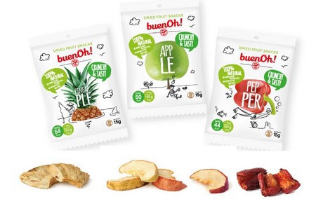 “No hay nada igual en el mercado”, afirma Diego Calderón, director de marketing y responsable de ventas para este producto. “Normalmente, la fruta deshidratada que solemos encontrar en las tiendas tiene alrededor de un 10% de humedad, con una textura blanda y gomosa y si son más crujientes suelen estar liofilizados o secados a altas temperaturas, lo cual le hace perder al producto propiedades nutritivas. Nosotros hemos logrado un producto deshidratado con aproximadamente un 3% de humedad. Para lograr una textura tan crujiente, secamos el producto a bajas temperaturas, evitando que el producto pierda propiedades beneficiosas y utilizamos un proceso de texturización exclusivo consiguiendo una vida útil de un año“.