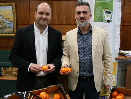 David Alba, de TEO, y Rafael Grau, de Asovav, con mandarinas Spring Sunshine