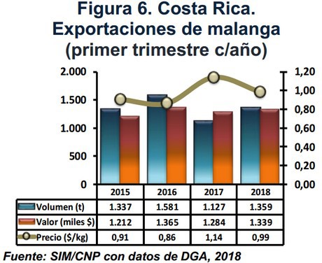 El Departamento del Comercio de Estados Unidos publicó que había importado durante el primer trimestre del 2018 un total de 18.980 toneladas, un incremento del 9,90% respecto al mismo periodo de 2017. El precio promedio del tiquizque fue de 0,74 y 0,66 dólares por kilo. Aunque la mayor parte del tiquizque fue importado desde Ecuador, el proveniente de Costa Rica supuso el 9,81% del volumen total.