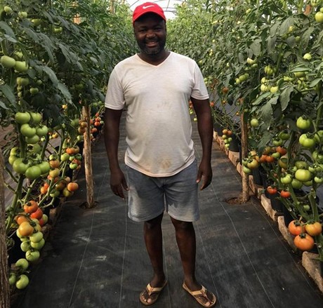 Bernardo Antonio (arriba en la foto) produce en 2.500 metros de invernadero sin suelo. Cultiva tomates, pimientos y pepinos, y vende toda su producción al supermercado Spar de Maputo.