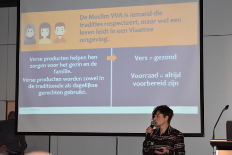 "Los consumidores marroquíes y turcos son un grupo accesible para las empresas. La situación económica determina las mayores diferencias entre los consumidores. La cultura gastronómica marroquí es una mezcla de diferentes influencias, en contraste con la turca. Ambos consumidores a menudo almacenan grandes existencias, porque comer juntos es muy importante dentro de ambas culturas. Como resultado, al consumidor musulmán le gusta comprar en los supermercados más baratos. Es importante comprender a este sector, porque es un grupo en crecimiento dentro de Bélgica", concluye Lies.