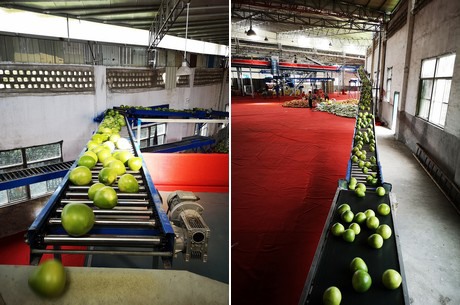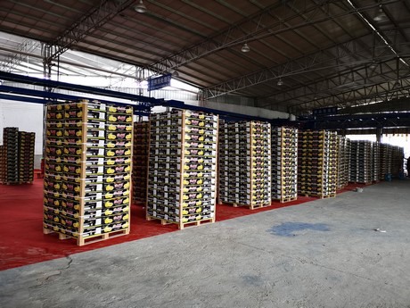 "Tenemos alrededor de 53 hectáreas de plantaciones de pomelo honey en Pinghé, y nuestra fábrica de procesamiento ocupa alrededor de 4.000 metros cuadrados. Controlamos cada fase de la operación, desde la plantación hasta el comercio de exportación. La temporada de exportación concluyó recientemente con nuestro último envío el 8 de enero. En cuanto a nuestras condiciones de producción, el volumen de producción general ha sido ligeramente mayor que el del año pasado. La exportación china está floreciendo, pero los consumidores europeos prefieren el pomelo honey más pequeño, por lo tanto, el volumen total exportado a Europa ha sido mucho menor este año porque los pomelos en China han sido relativamente grandes. Algunas empresas han exportado grandes pomelos honey al mercado ruso, pero su demanda también ha sido limitada. Al final, el volumen de exportación total ha sido muy inferior al del año anterior. Sin embargo, a pesar de la tendencia general, nuestra exportación a Europa ha aumentado, porque prestamos atención al mercado europeo y nuestra marca Guanwei tiene cierto reconocimiento".
