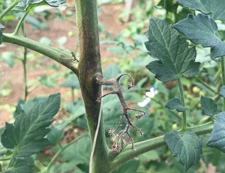 El tallo de la planta infectada puede mostrar pardeamiento y necrosis