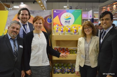 El equipo de HLB Specialties en Fruit Logistica 2017 con la Sra. Raiß (dcha.)
