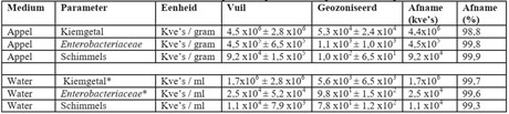 VAM Watertech (Borssele, Países Bajos) es una empresa especializada en el tratamiento de agua para procesadores y envasadores de productos frescos en el sector hortofrutícola. Para demostrar el efecto de la depuración del agua, encargó una investigación independiente a Hogeschool Zeeland y Micro-Analysis Zeeland. Los porcentajes mencionados anteriormente se demuestran en esta investigación (consulte la tabla y el gráfico a continuación), que además se puede solicitar íntegra a VAM Watertech.
