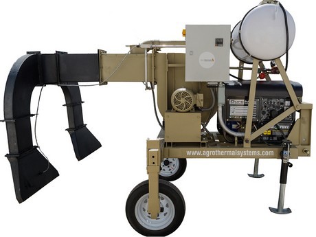 Agrotherm XR1 es uno de los varios diseños nuevos que Aeolo S.A.de C.V., con sede en Querétaro, México, está fabricando para Agrothermal Systems, con sede en Napa, California. La máquina, que puede tratar cultivos en hileras y también verticales gracias a que se puede cambiar el grupo de soplado, es autónoma y se puede enganchar en un cuatriciclo o un vehículo tractor. (También se puede utilizar con un tractor agrícola convencional). Esta funciona en más cultivos que su predecesora, Agrotherm XT.