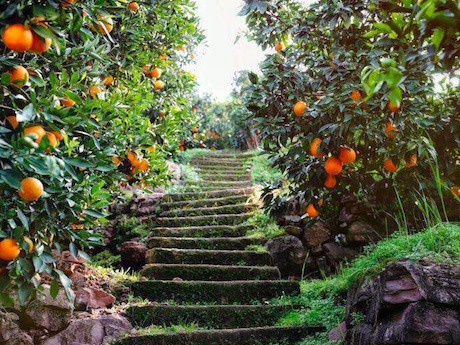 Finca de naranjas rojas