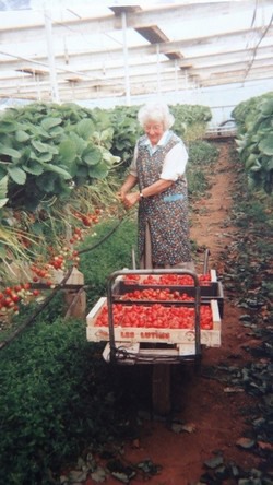 Marie-Louise Hollaar recogiendo fresas