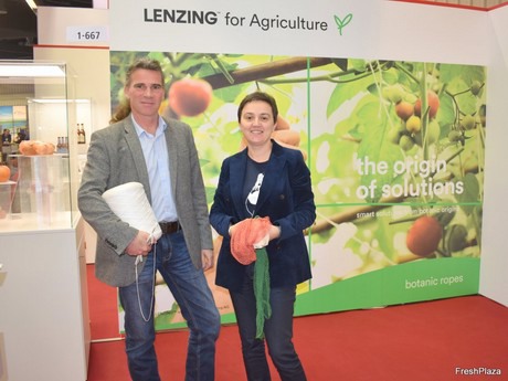 Robert Malinowsky y Marina Crnoja-Cosic, de Lenzing AG, también presentaron sus mallas reutilizables en la Biofach de este año en Núremberg.