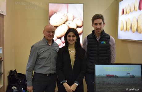 Hervé Lecouffe, Yuliana Avsievich y Pierre-Yves Tondreau en Fruit Logistica