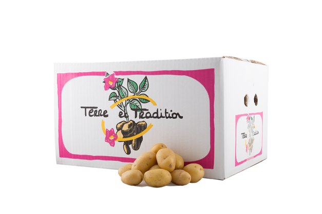Desde hace quince años, Maison Lecouffe comercializa patatas con su marca propia Terre et Tradition. "Utilizamos esta marca para toda la gama en cajas de 12,5 kg. Es una marca conocida por los clientes. Sus clientes ya están acostumbrados y piden esta marca".