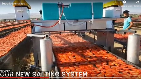 A partir de ahora, la salazón se puede llevar a cabo de manera uniforme y precisa gracias a un sistema automático de dosificación perfecta y sin trabajadores en contacto con la sal, tal vez trabajando bajo altas temperaturas de verano, durante horas y horas. Esto da como resultado una calidad superior no solo en términos de secado, sino también en el color de los tomates.