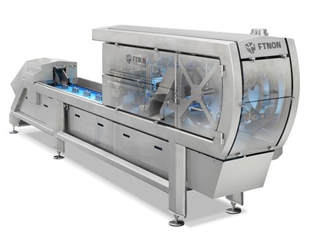 Además de ahorrar en trabajadores, la higiene es un motivo importante para comprar la máquina para la empresa Düpmann. Según Heinz Düpmann, el producto ya no pasa de mano en mano, y la máquina es fácil de limpiar. Lars Heuvelmans, de JBT FTNON, lo confirma. "La mayoría de las máquinas existentes necesitan muchas piezas para cortar cebollas. La nueva máquina que hemos desarrollado es mucho más compacta y tiene un 60% menos de piezas. La máquina no utiliza cadenas y todo está fabricado en acero inoxidable. Tiene una construcción modular para que todas las partes de puedan limpiar por separado. Las piezas que levantan las cebollas, las rotan para retirar la piel y las vuelven a bajar, a menudo contienen resortes y correas de transmisión. Esto lo hemos reemplazado con imanes permanentes. Una gran ventaja de esto es que los imanes necesitan poco mantenimiento, pero la instalación sigue siendo la misma".