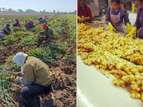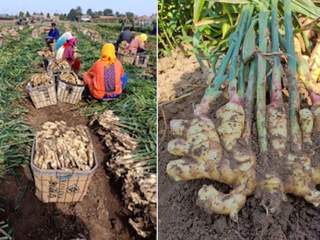 Agricultores cosechando jengibre