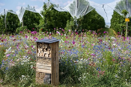 Plantas melíferas y hotel de insectos, cerca de los huertos