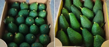 Dos variedades del cultivo etíope: a la izquierda, los aguacates Hass habituales, a la derecha, la variedad Pinkerton
