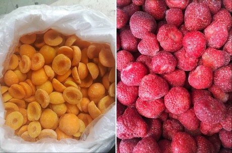 Melocotones y fresas congelados