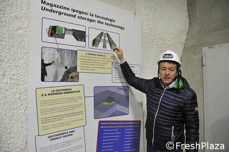Estas son las grandes ventajas de los almacenes subterráneos: la reducción del consumo energético; un gran ahorro de agua, debido a la posibilidad de utilizar energía geotérmica para enfriar los compresores; la ausencia de paneles aislantes de poliuretano expandido, cuya remoción genera una fuerte contaminación; la protección del paisaje y del territorio agrícola, evitando la construcción de cobertizos en la superficie, y el uso de una cavidad minera existente, que de lo contrario no sería utilizada para nada.