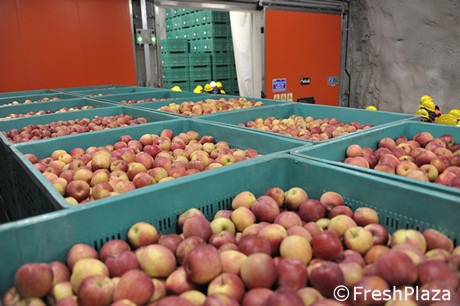 "Las cámaras subterráneas son almacenes frigoríficos”, explicó Andrea Fedrizzi, responsable de marketing de Melinda, durante una visita con periodistas. “La mina es la cantera Rio Maggiore, de la cual la empresa Tassullo extrae dolomía para la producción de morteros y cementos para la industria de la construcción. Las cámaras vacías de la cantera son utilizadas por Melinda para almacenar sus manzanas".