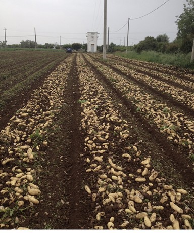 "Con una superficie total de más de 40 hectáreas, el negocio principal de la empresa sigue siendo el cultivo de patatas nuevas. Entre las diferentes variedades sembradas se encuentran: Spunta, Safrane, Bellini, Loane, Soprano y Cherie".