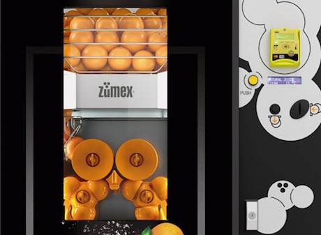 Además, las nuevas Natural Vending incluyen un nuevo sistema de limpieza programable por tiempos o número de zumos, sin necesidad de toma de agua. Asimismo, las máquinas expendedoras de ZUMEX® mejoran la programación del servicio de zumo a través de un nuevo display más intuitivo que da a escoger entre dos modos de llenado del zumo, por número de naranjas o por un preciso sistema de llenado de vaso que permite seleccionar la cantidad exacta de zumo.