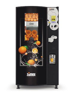 Además, las nuevas Natural Vending incluyen un nuevo sistema de limpieza programable por tiempos o número de zumos, sin necesidad de toma de agua. Asimismo, las máquinas expendedoras de ZUMEX® mejoran la programación del servicio de zumo a través de un nuevo display más intuitivo que da a escoger entre dos modos de llenado del zumo, por número de naranjas o por un preciso sistema de llenado de vaso que permite seleccionar la cantidad exacta de zumo.
