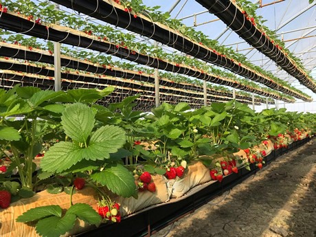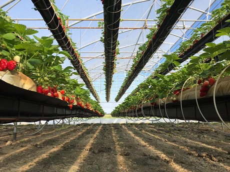 "Gracias a este sistema, podemos cultivar aproximadamente el doble de plantas por unidad de superficie. Por el momento, tenemos 110.000 plantas, trasplantadas el verano pasado. Las variedades son Portola y Albion, y tenemos otras variedades en la fase de prueba. Hemos llevado a cabo una cosecha de otoño y ahora nos acercamos a la de primavera".