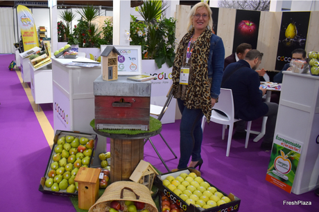 Valérie Beyene Severin, en el puesto de Coccolo, presenta los productos de la empresa resultado de prácticas responsables con el medio ambiente, como el certificado HVE, obtenido hace un mes