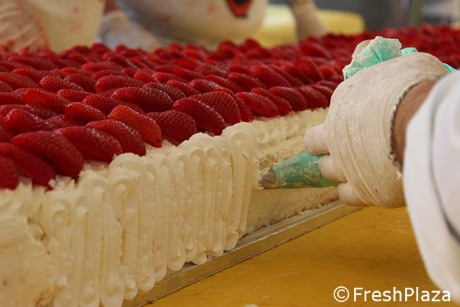 Más de 300 horas de trabajo, 3.500 huevos, 103 kg de harina, 100 kg de azúcar y 8 quintales de fresas. Estos son los ingredientes principales que han permitido la realización de la tarta de fresas más grande del mundo, de la que pudieron disfrutar todos los presentes durante un evento celebrado en Scanzano Jonico (Basilicata, Italia), el pasado domingo 28 de abril.