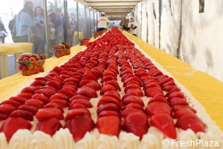 La empresa Piraccini Secondo, una reconocida compañía y creadora del evento, puso a disposición más de 8 quintales de fresas de la variedad Sabrosa.
