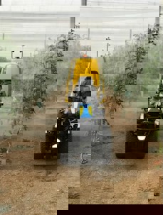 Se trata de Tizona 14, un equipo hidroestático 4x4 articulado. Su diseño destaca por sus mínimas dimensiones que le permite trabajar en espacios muy reducidos. Dispone de una bomba de pulverización (40 bar 50L) y unos difusores que permiten hacer tratamientos altamente eficaces ya sea en cultivo de tomate, berenjena, pimiento etc.