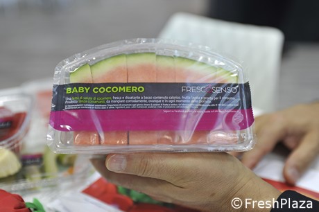 La sandía Baby completa la línea de sandía: triángulos de sandía listos para comer. También en este caso la practicidad es el factor más importante, ya que permite consumir la fruta sin tener que perder tiempo en pelarla y prepararla y además evita desperdicios.