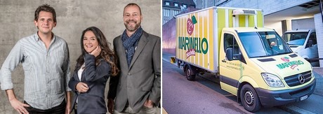 Izquierda: la gerencia de Marinello & Co con el propietario Tiziano Marinello (izquierda). Derecha: uno de los furgones de la empresa